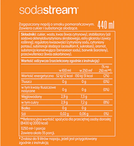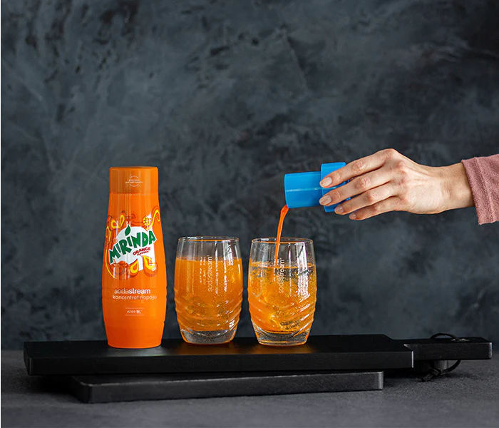 Nie wierzysz, że smakuje jak oryginał? Przekonaj się sam, przygotowując domową Mirindę z pomocą ekspresu SodaStream. Decyduj o intensywności smaku, dolewając koncentrat do dobrze nagazowanej wody w preferowanej ilości. Teraz oryginalny pomarańczowy smak SodaStream Marinda, możesz mieć za naciśnięciem jednego przycisku! Ciesz się maksimum kultowego orzeźwienia kiedy tylko masz na to ochotę!