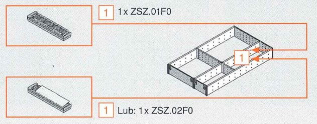 Wkład z przegródkami BLUM Orga-Line do szerokości korpusu 350 - 449 mm i głębokości prowadnicy 500 mm