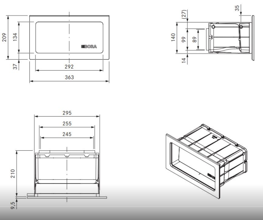 ● Otwór w murze: 310 x 155 mm