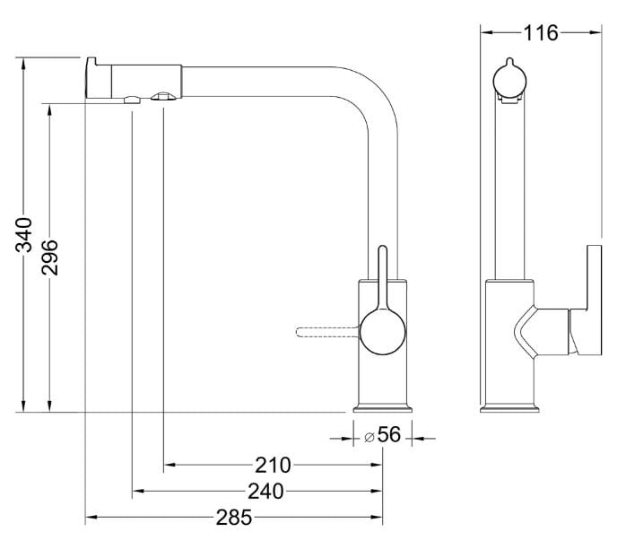 – wykończenie: CHROM – wylewka obrotowa do 360° – głowice ceramiczne – 2 elastyczne wężyki podłączeniowe 3/8“ – 400 mm – 1 wężyk podłączeniowy do filtra 1/2” – 400 mm z szybkozłączką – 2 perlatory – rączka mieszacza odchyla się do przodu, dzięki czemu można montować baterię pomiędzy zlewozmywakiem podwieszanym a ścianą.