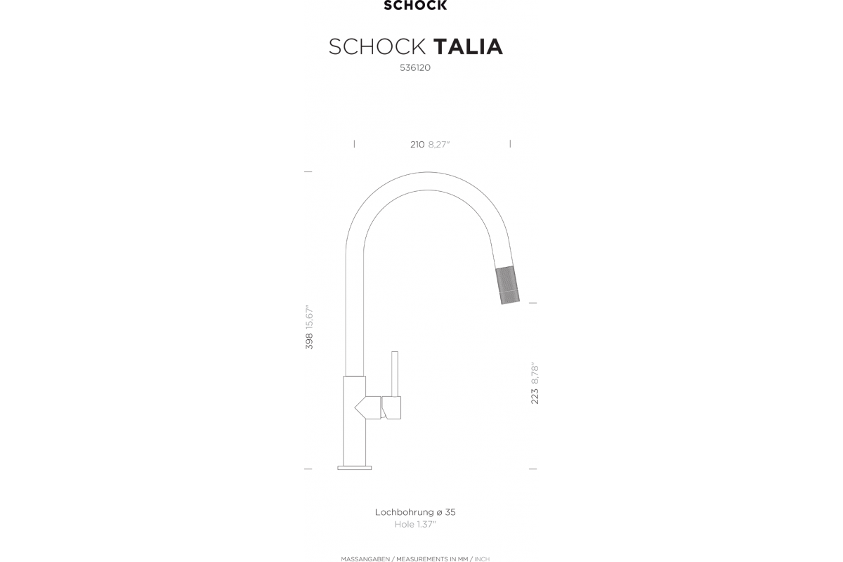 Bateria z wyciąganą wylewką SCHOCK Talia 536.120S Czarna