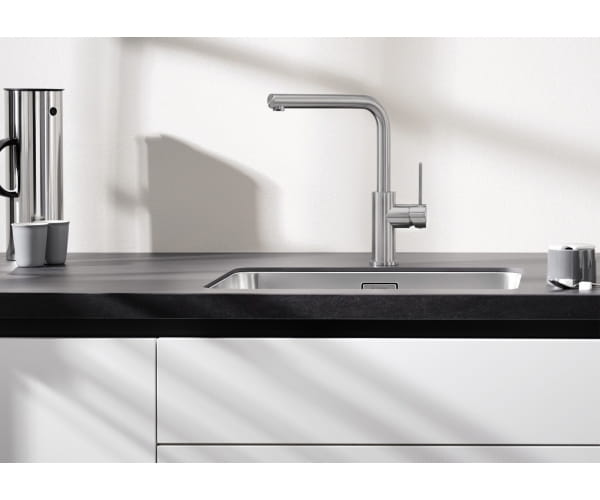 - Wylewka wykonana ze stali szlachetnej, powierzchnia szczotkowana