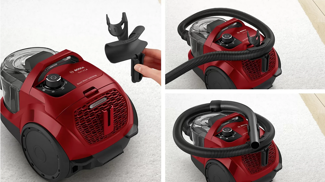 Przechowywanie odkurzacza zajmuje przestrzeń. Ale nie tak bardzo jak kiedyś! Dzięki prostemu rozwiązaniu do przechowywania węża, wąż można solidnie przymocować do urządzenia, oszczędzając miejsce. Idealny do przechowywania w małej przestrzeni, takiej jak szafka.