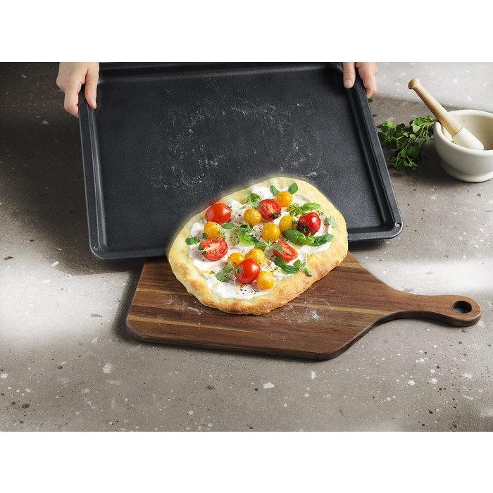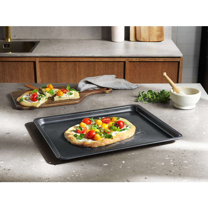 Blacha Easy2Clean z innowacyjną powłoką ceramiczną umożliwia gotowanie bez oleju lub papieru do pieczenia. Zapobiega przywieraniu tłuszczu i brudu, więc wszystko czego potrzebujesz do czyszczenia, to mokra ściereczka i odrobina płynu do mycia naczyń.