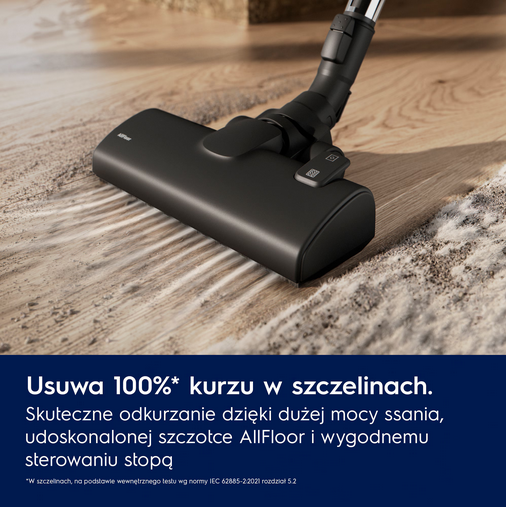 - Wydajność zbieranie kurzu - parkiet [%]: 100