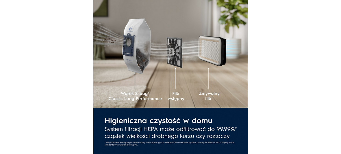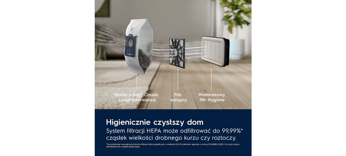 - Wydajność zbieranie kurzu - parkiet [%]: 100