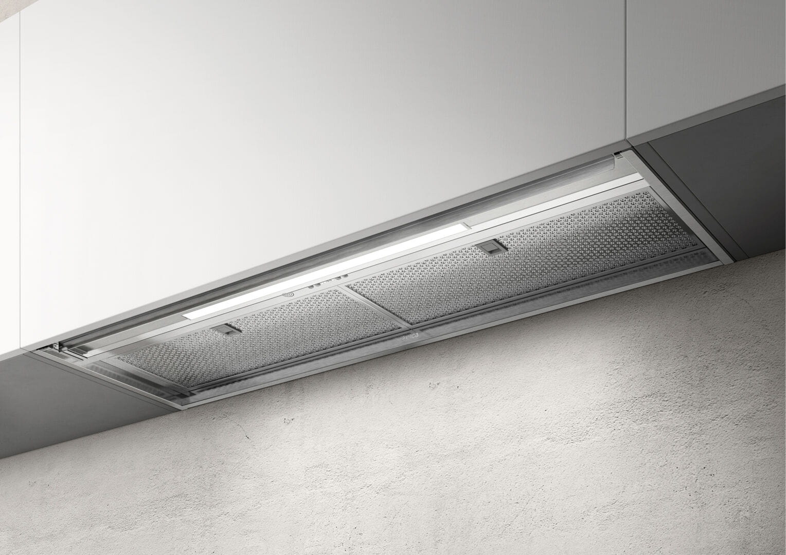 Innowacyjny okap, który dopasowuje się do liniowej zabudowy kuchni, gwarantując ochronę szafek i błyskawiczne oczyszczanie powietrza w strefie gotowania.