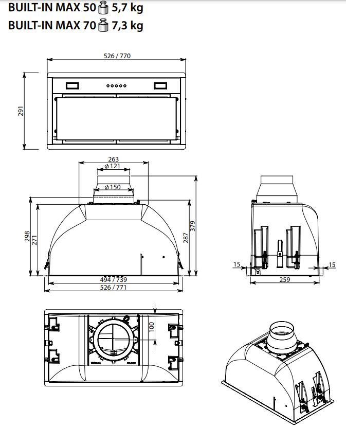 OKAP BUILT-IN MAX EVO 70 INOX 600 m3/h
