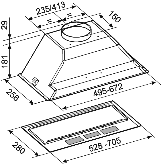 Model ten stworzony został tak, aby swoim designem pasował do kuchni zaaranżowanej w nowoczesnym stylu. Suwakowe sterowanie umieszczone od spodu okapu jest bardzo intuicyjne, co pozwala na szybką zmianę trybu pracy. Wykonany został wyjątkowo precyzyjnie, z materiałów najwyższej jakości.