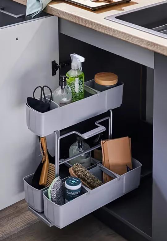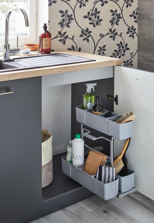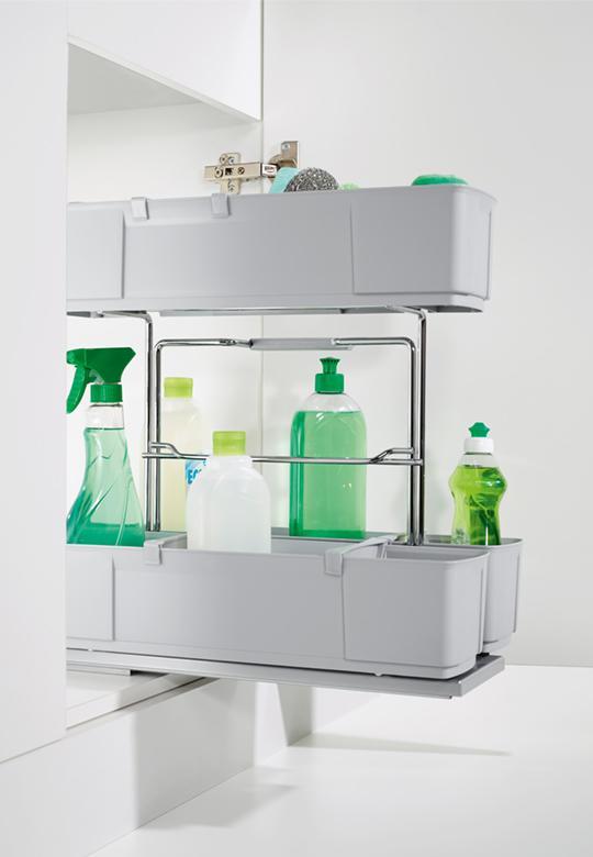 - praktyczny organizer: przegrody i wysokie pojemniki gwarantują, że wszystkie środki czystości pozostaną na swoim miejscu, a dostęp do nich będzie szybki i łatwy.