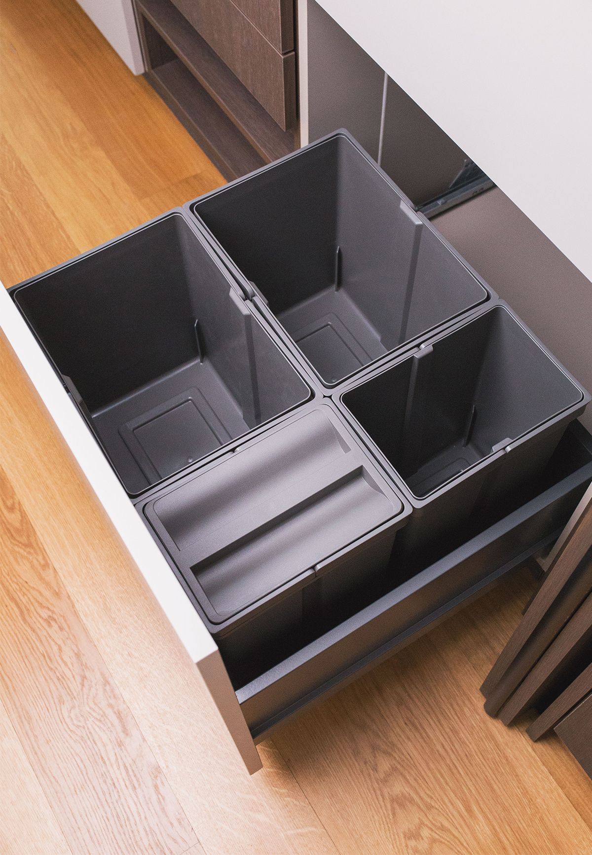 Zestaw QUATTRO 600 łączy funkcjonalność z wygodą użytkowania, dzięki czemu segregacja odpadów staje się szybka i intuicyjna. Wybierz rozwiązanie, które uporządkuje Twoją kuchnię i sprawi, że codzienne obowiązki staną się prostsze.
