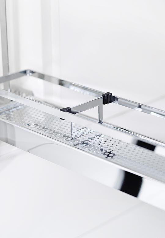- Stabilność i wygoda: wyciąg montowany jest na dwóch prowadnicach, które gwarantują stabilność. Mechanizm wyposażono w adaptery, umożliwiające łatwe wpięcie stelaża w prowadnice oraz regulację frontu w trzech płaszczyznach bez konieczności demontażu.