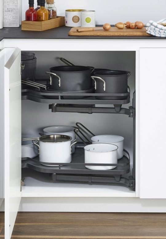 LeMans II należy zamontować w szafce kuchennej prostej, z frontem na zawiasach o szerokości frontu 600 mm. Zewnętrzna szerokość szafki to około 1000 mm (światło szafki nie może być mniejsze niż 962 mm). Maksymalna szerokość drzwiczek (część otwierana) to 600 mm, światło frontu może się wahać w przedziale 561 - 568 mm. Głębokość szafki to min. 500 mm.