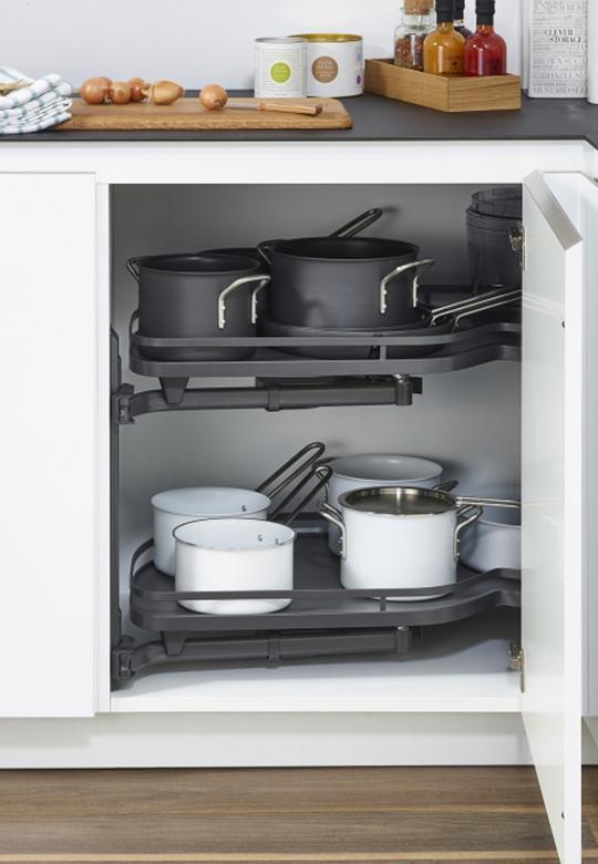 LeMans II należy zamontować w szafce kuchennej prostej, z frontem na zawiasach o szerokości frontu 600 mm. Zewnętrzna szerokość szafki to około 1000 mm (światło szafki nie może być mniejsze niż 962 mm). Maksymalna szerokość drzwiczek (część otwierana) to 600 mm, światło frontu może się wahać w przedziale 561 - 568 mm. Głębokość szafki to min. 500 mm.