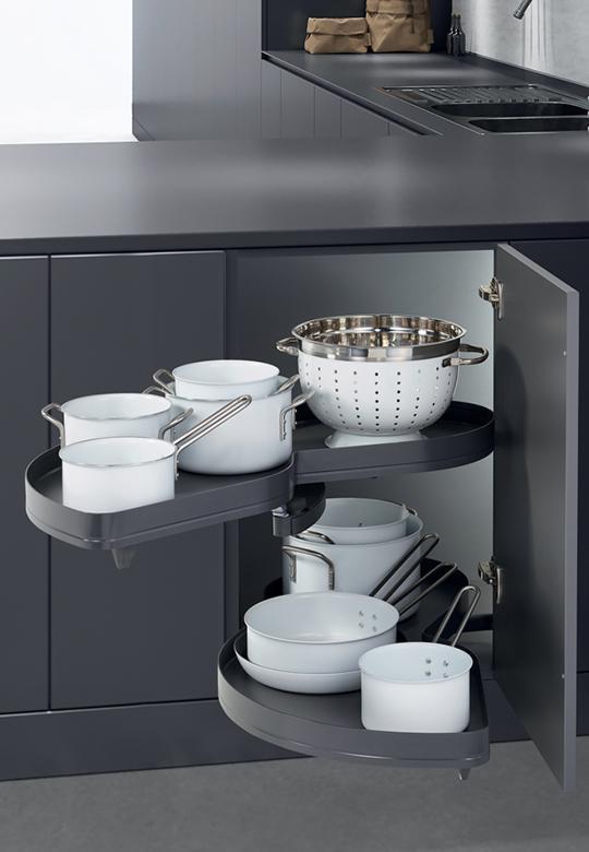 LeMans II należy zamontować w szafce kuchennej prostej, z frontem na zawiasach o szerokości frontu 600 mm. Zewnętrza szerokość szafki to około 1000 mm (światło szafki nie może być mniejsze niż 962 mm). Maksymalna szerokości drzwiczek (część otwierana) to 600 mm, światło frontu może się wahać w przedziale 561 - 568 mm. Głębokość szafki to min. 500 mm.