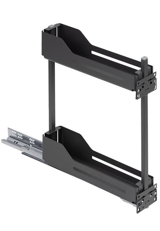 Snello to zaawansowana konstrukcja i łatwy montaż. Snello Libell 150 opiera się na jednej dolnej prowadnicy z pełnym wysuwem, cichym domykiem oraz górnym prowadzeniu, sprytnie ukrytym pod półką. Taka konstrukcja gwarantuje stabilność i estetykę całego systemu, a boczna prowadnica dodatkowo wzmacnia cargo.