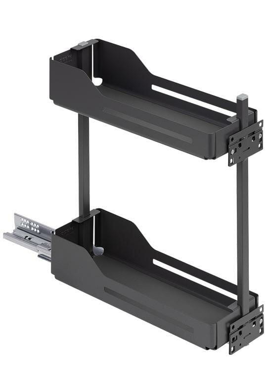 Łatwość użytkowania na co dzień. Dzięki prowadnicom z pełnym wysuwem i systemem cichego domyku, cargo Snello Libell 200 gwarantuje szybki i wygodny dostęp do zawartości szafki. Jednym ruchem możesz wysunąć system na zewnątrz i swobodnie korzystać z produktów – z każdej strony: z lewej, prawej oraz od góry.