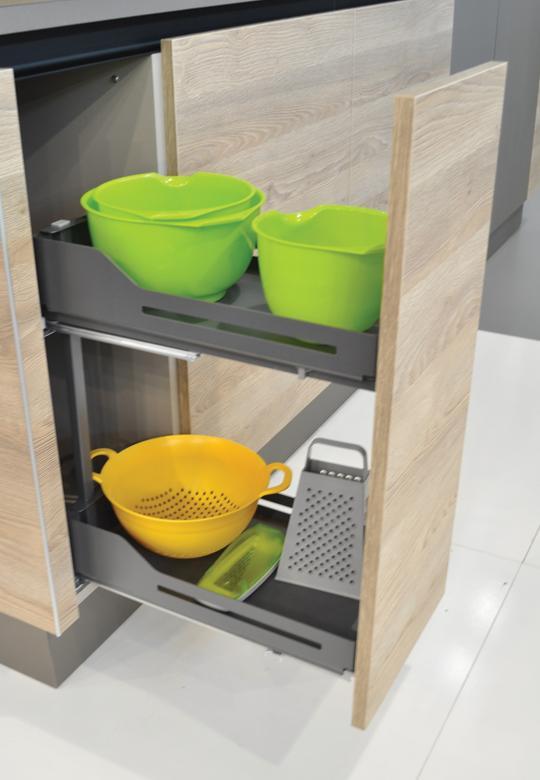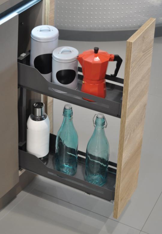 Unikalną zaletą Snello jest możliwość szybkiego demontażu górnego kosza, co okazuje się szczególnie przydatne podczas gotowania. Przyprawy i dodatki kuchenne będą zawsze w zasięgu ręki, co sprawia, że system jest idealnym rozwiązaniem dla pasjonatów kulinariów.