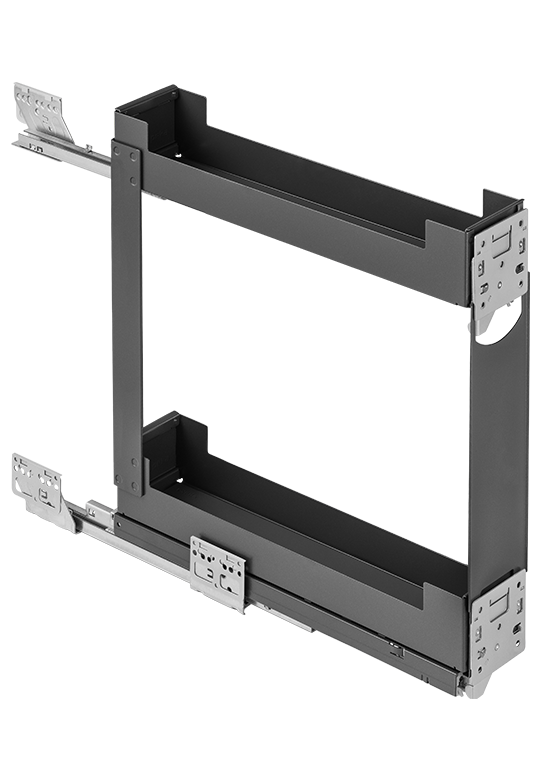 System ten jest przeznaczony do montażu z frontami wyposażonymi w uchwyty meblowe, ale również do szafek bezuchwytowych – w takim przypadku wymaga dodatkowego montażu mechanizmu push to open, który można nabyć osobno.
