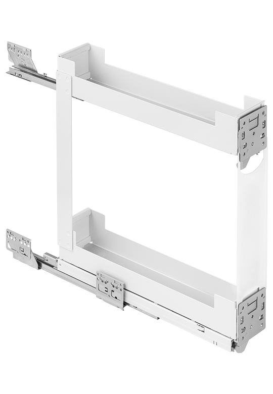 System ten jest przeznaczony do montażu z frontami wyposażonymi w uchwyty meblowe, ale również do szafek bezuchwytowych – w takim przypadku wymaga dodatkowego montażu mechanizmu push to open, który można nabyć osobno.