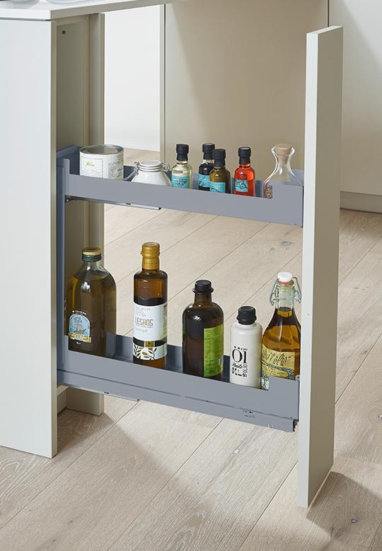 System ten jest przeznaczony do montażu z frontami wyposażonymi w uchwyty meblowe, ale również do szafek bezuchwytowych – w takim przypadku wymaga dodatkowego montażu mechanizmu push to open, który można nabyć osobno.
