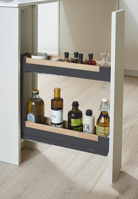 Pinello Spice Liro z drewnem 150/ 2/ antracyt wąskie cargo dwu-półkowe do małych przestrzeni wokół zlewu i kuchenki