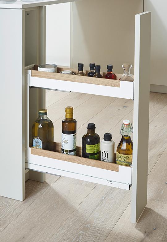 Pinello Spice Liro z drewnem 150/ 2/ białe wąskie cargo dwu-półkowe do małych przestrzeni wokół zlewu i kuchenki