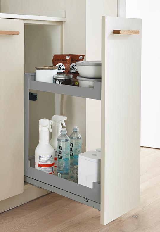 System ten jest przeznaczony do montażu z frontami wyposażonymi w uchwyty meblowe, ale również do szafek bezuchwytowych – w takim przypadku wymaga dodatkowego montażu mechanizmu push to open, który można nabyć osobno.
