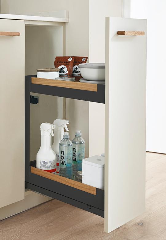 System ten jest przeznaczony do montażu z frontami wyposażonymi w uchwyty meblowe, ale również do szafek bezuchwytowych – w takim przypadku wymaga dodatkowego montażu mechanizmu push to open, który można nabyć osobno.