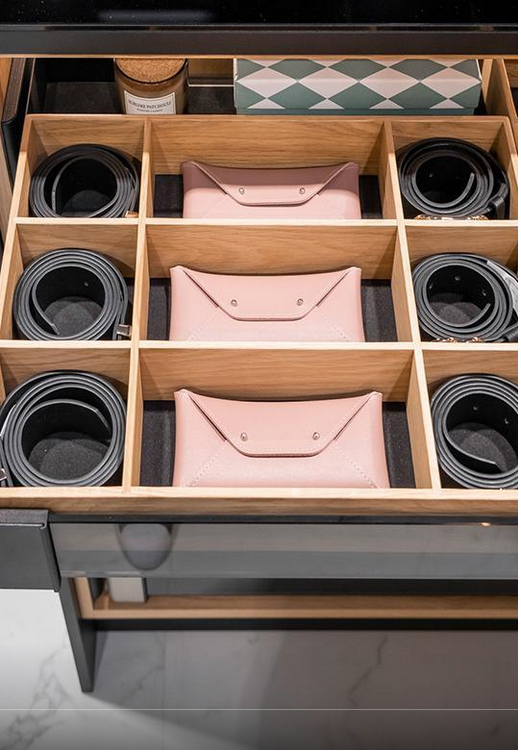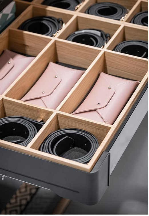 Dzięki podziałowi na 3 większe komory i 6 mniejszych większość Twoich dodatków garderobianych znajdzie swoje miejsce, dzięki temu łatwiej utrzymasz porządek a na uporządkowane wnętrze zawsze miło się patrzy i korzysta z niego.