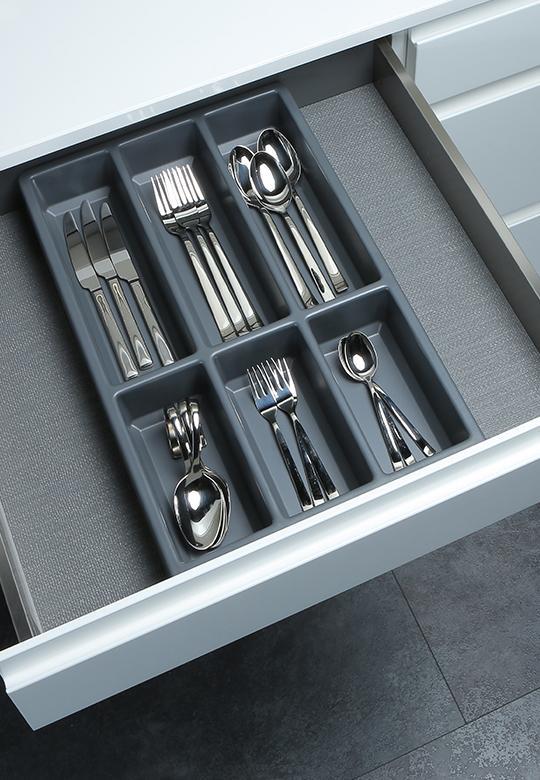 Prosta forma wkładu pozwala na wykorzystanie Separado w szufladach przy niestandardowych szerokościach. Można umieścić jeden lub kilka wkładów z linii Separado w jednej szufladzie w zależności od jej szerokości.