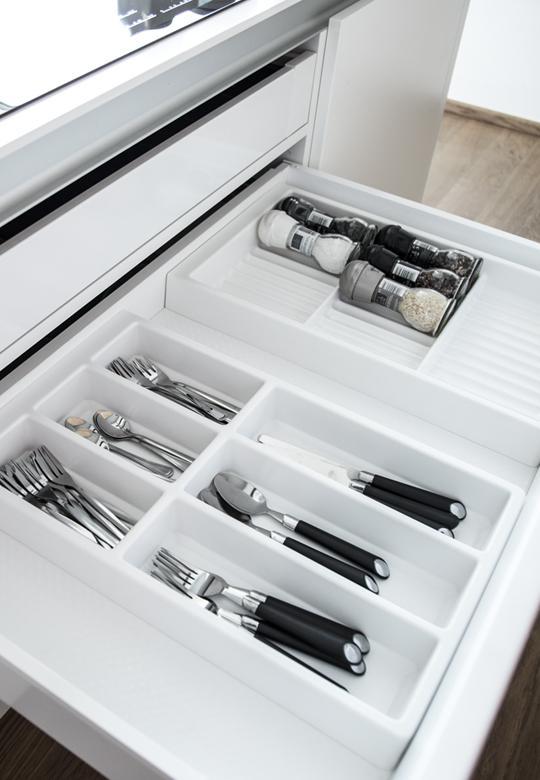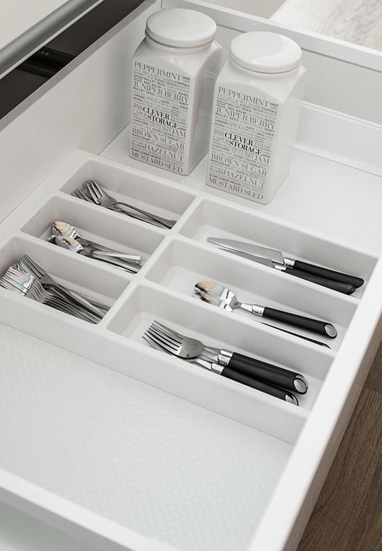 Prosta forma wkładu pozwala na wykorzystanie Separado w szufladach przy niestandardowych szerokościach. Można umieścić jeden lub kilka wkładów z linii Separado w jednej szufladzie w zależności od jej szerokości.