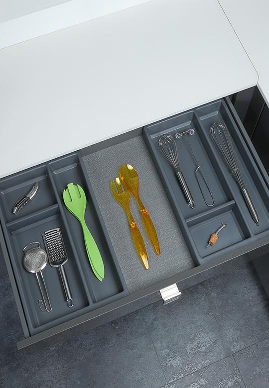 Można umieścić jeden lub kilka wkładów z linii Separado w jednej szufladzie w zależności od jej szerokości. Wkład dostępny jest o szerokości 300 mm i głębokości 540 mm. Istnieje możliwość w własnym zakresie docięcia wkładu na głębokość 460 mm.