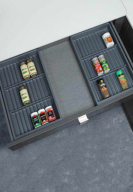 Można umieścić jeden lub kilka wkładów z linii Separado w jednej szufladzie w zależności od jej szerokości.