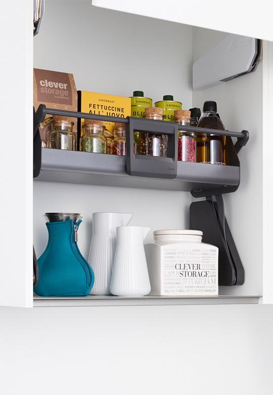 iMove to idealne rozwiązanie do organizacji przestrzeni w szafce wiszącej. Codzienne korzystanie z górnych szafek kuchennych staje się wygodniejsze i bardziej ergonomiczne.