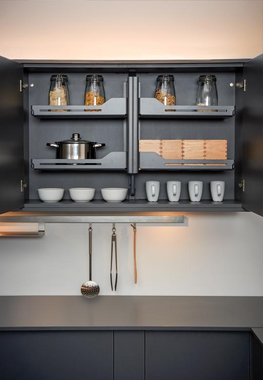 Dzięki systemowi podnośników zamontowanych w ramieniu mechanizmu Pegasus, możesz obniżyć półki szafki wiszącej do swojego poziomu, dzięki czemu nawet zawartość przechowywana wysoko w szafce będzie łatwo widoczna i zawsze dostępna, a ponadto zapanujesz nad bałaganem i zawsze będziesz miała wszystko dobrze poukładane.
