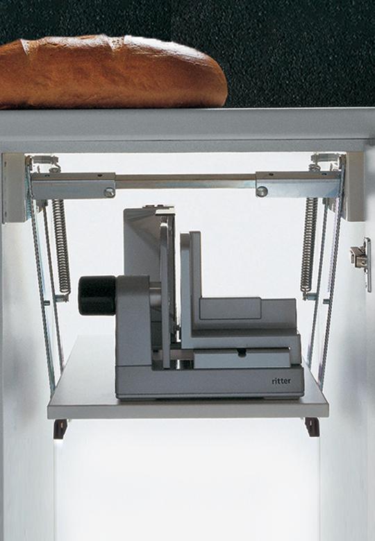 Mechanizm blatu krajalnicy równoległy mechanizm obrotowy do przechowywania urządzeń kuchennych, montowany w szafce