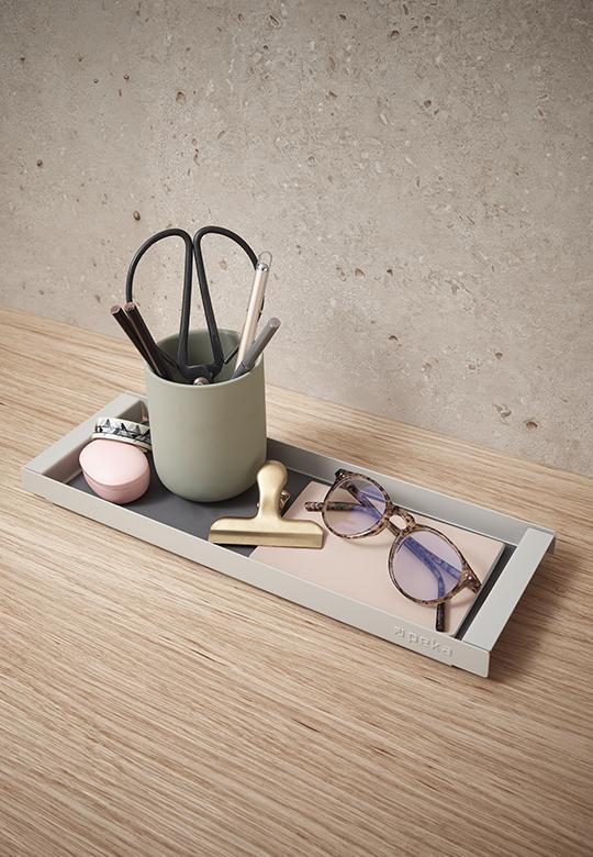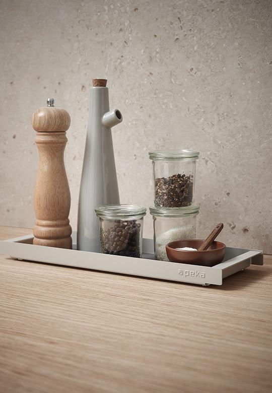 Mała tacka Piuro Mini Tray umiejscowiona w kuchni, najlepiej przy kuchence lub płycie utrzyma delikatne blaty w czystości bez plam olejowych i zarysowań. Po prostu zapewni wygodę w przygotowaniu posiłków i oszczędzi czas na sprzątaniu po kulinarny wyczynach, w celu wytarcia blatu tacę z zawartością można łatwo odsunąć na bok. Małą tackę po przygotowaniu dań można sprawnie i szybko schować do szafki lub przenieść na swoje miejsce.