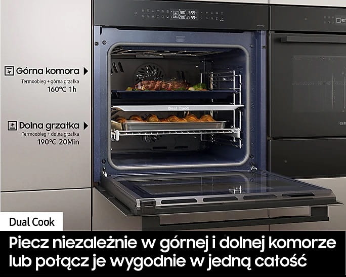 *Wymaga dostępu do sieci bezprzewodowej, konta Samsung Account i aplikacji Samsung SmartThings. Aplikacja Samsung SmartThings działa z systemem operacyjnym Android 8.0 (Oreo) lub nowszym, który jest zoptymalizowany pod kątem smartfonów firmy Samsung. Ta aplikacja obsługuje również system iOS 13 lub nowszy dla modeli iPhone'a. Aplikacja SmartThings jest dostępna w sklepie App Store i Play Store. ** Opcja dostępna w niektórych wersjach językowych, m.in. angielskiej, francuskiej, niemieckiej, włoskiej i hiszpańskiej. Brak dostępnej w wersji polskiej.Air Sous Vide* to przeniesienie precyzyjnego gotowania próżniowego do piekarnika. System precyzyjnie określa temperaturę co do 1 stopnia w każdym zakamarku piekarnika i utrzymuje ją wyrównaną. W efekcie niezależnie od tego, w którym punkcie komory znajduje się dana potrawa, będzie doskonale upieczona, delikatna i soczysta! Nie ma mowy o przypaleniu i przesuszeniu.