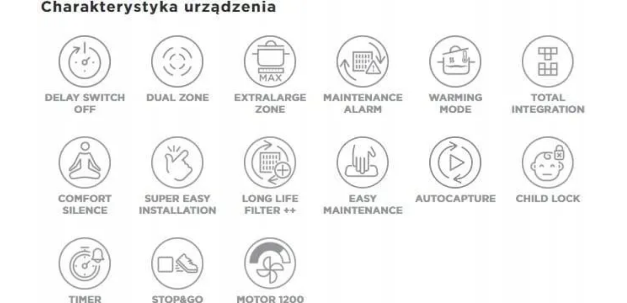ALARM KONSERWACJI Produkty wyposażone w tę funkcję są wyposażone we wskaźnik świetlny, który ostrzega, gdy filtry tłuszczowe i filtry zapachowe zbliżają się do maksymalnego nasycenia. Dzięki temu zawsze będziesz wiedzieć, kiedy trzeba je wyprać lub wymienić, i będziesz w stanie utrzymać produkt w czystości i funkcjonalności przez długi czas.