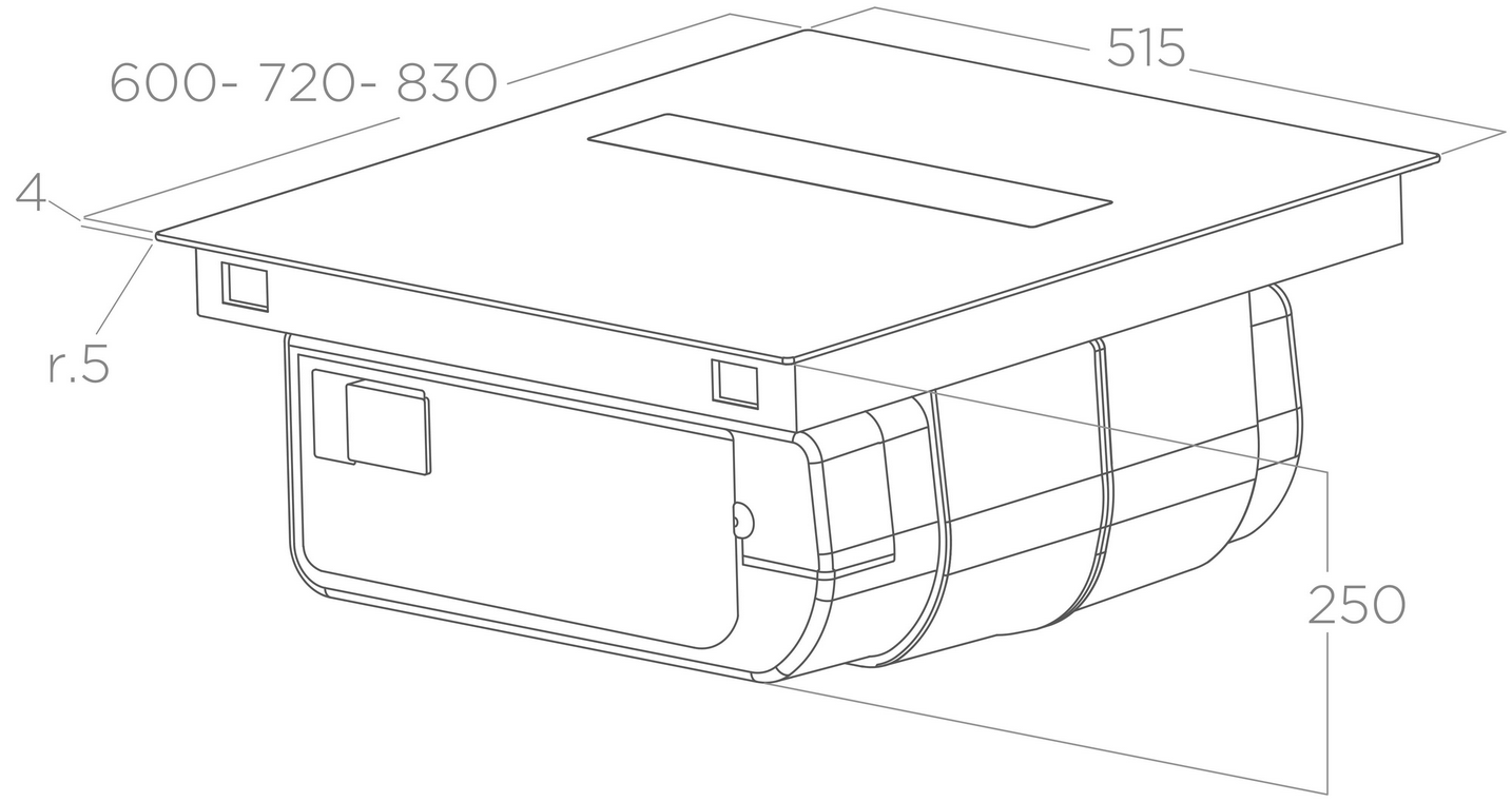 Płyta z wbudowanym okapem o szerokości 60cm. Idealnie dopasuje się zarówno do przestronnych kuchni, otwartych na salon, jak i bardziej kompaktowych stref gotowania. Wyrafinowany motyw graficzny na powierzchni płyty skrywa wysokowydajny system wyciągowy, który może być uruchamiany przez dotknięcie centralnej klapki.