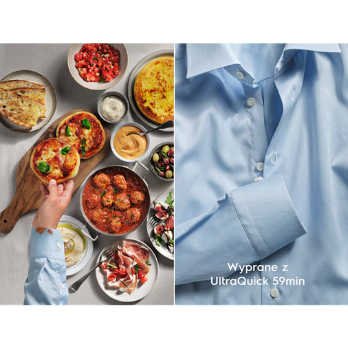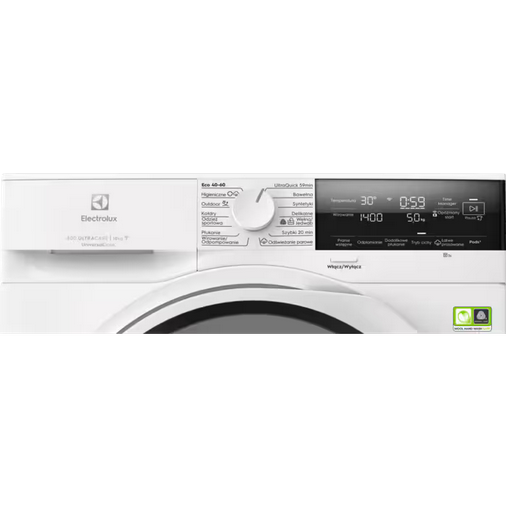 - Programy: bawełna, delikatny, kołdra, Eco 40-60, Higieniczny, odzież zewnętrzna, szybki 20 min, płukanie, wirowanie/odprowadzanie wody, odzież sportowa, odświeżanie - program parowy, tkaniny syntetyczne, Ultraquick 59Min, wełna/jedwab