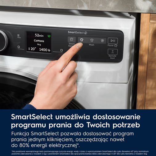 - Programy prania: bawełna, delikatny, Eco 40-60, Higieniczny, jeans, pamięć 1/Mój ulubiony 1, szybki 20 min, płukanie, wirowanie/odprowadzanie wody, odzież sportowa, tkaniny syntetyczne, Ultraquick 49Min, wełna