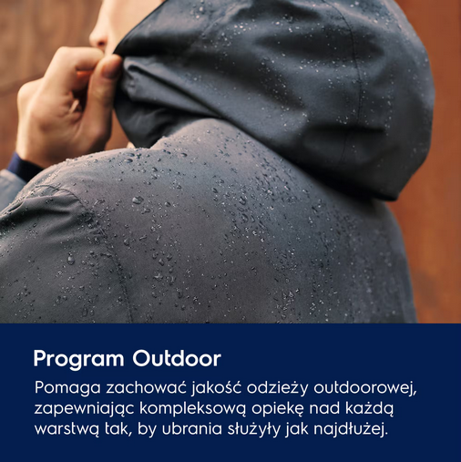 Pralki Electrolux z programem Outdoor to optymalne rozwiązanie do pielęgnacji odzieży outdoorowej — pomagają zachować jej jakość i wydłużyć żywotność. Program idealnie nadaje się do odzieży turystycznej, technicznej, sportowej, kurtek z materiałów nieprzemakalnych i oddychających, kurtek typu shell z odpinanym polarem lub wewnętrznym ociepleniem. Pozwala zapewnić kompleksową opiekę nad każdą warstwą — od bielizny termoaktywnej po wodoodporne kurtki — tak, by służyły dłużej i zachowały swoje właściwości, co jest szczególnie ważne w okresie zimowym.
