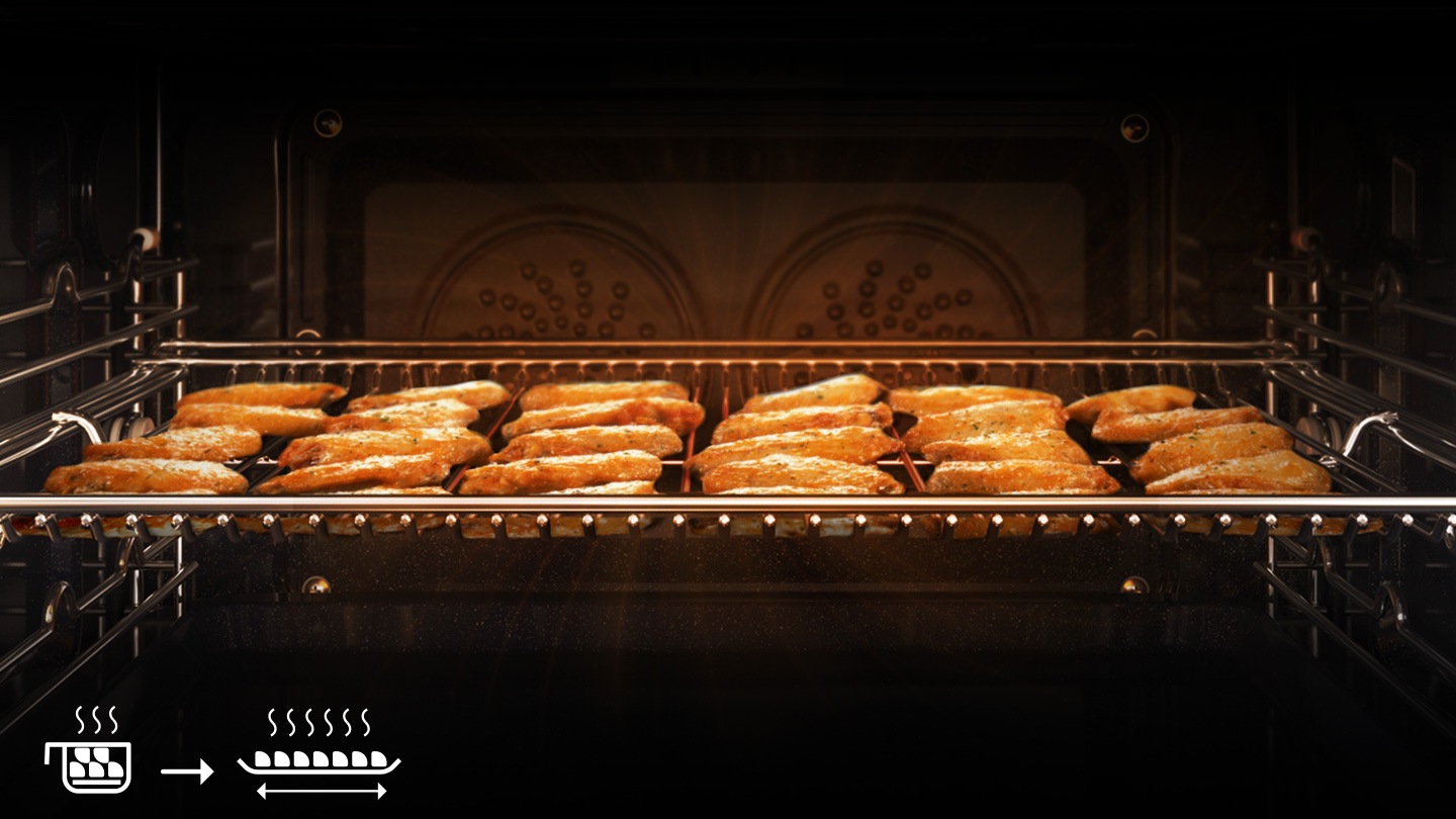Dwa termoobiegi to dwa wentylatory, które rozprowadzają ciepło po całym wnętrzu piekarnika, by w każdym jego zakamarku temperatura pozostawała niezmienna. Dzięki temu dania pieką się szybko i dokładnie. To doskonałe rozwiązanie do pieczenia czy opiekania które sprawi, że potrawy za każdym razem będą pyszne.
