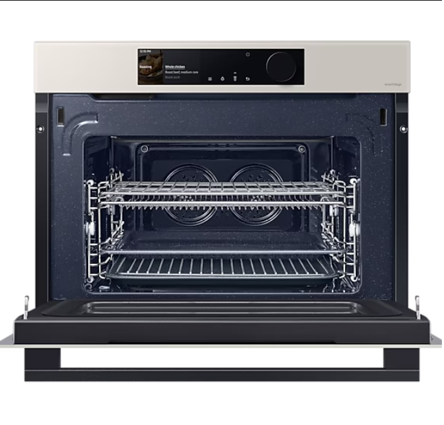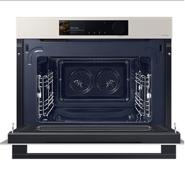 Sterowanie i monitorowanie pracy piekarnika kompaktowego z dowolnego miejsca za pośrednictwem aplikacji Samsung SmartThings*. Za pomocą smartfona zdalnie można włączyć wyłączyć i ustawisz czas pieczenia. Dodatkowo w aplikacji znajdują się wskazówki najbardziej optymalnego trybu oraz sposobu przygotowania z uwzględnieniem składników. Można również skorzystać z automatycznych programów, dodać własne lub skorzystać z bazy ciekawych przepisów.