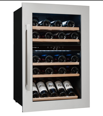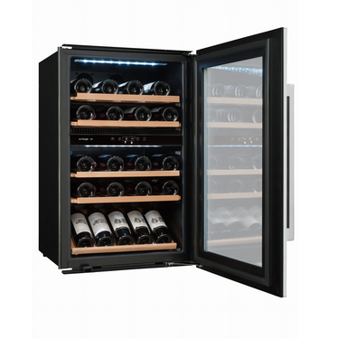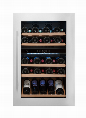 AVI47XDZA winiarka do zabudowy w słupku. Dwustrefowa o pojemności do 52 butelek wina.
