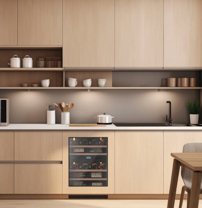 Winiarka AVU50PANEL do zabudowy. Dwustrefowa, o pojemności do 44 butelek. Rodzaj uchwytu: system push-pull