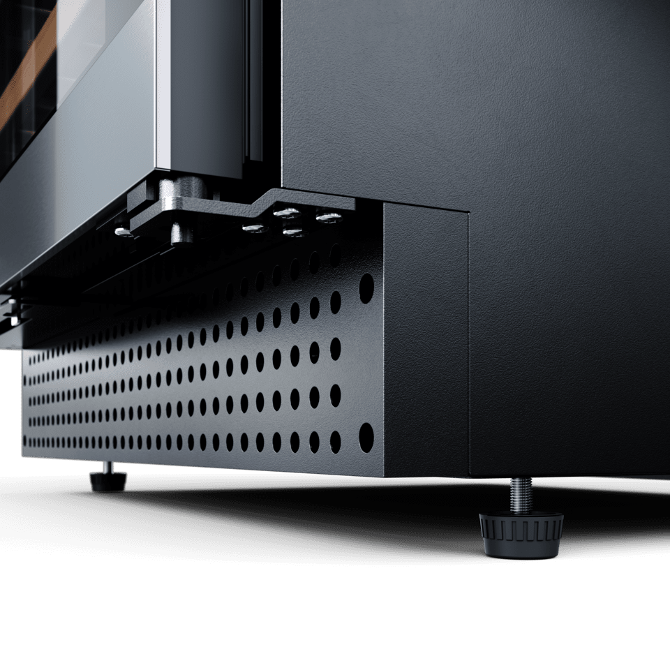 Całkowicie czarna powierzchnia zewnętrzna doskonale komponuje się z każdym pomieszczeniem