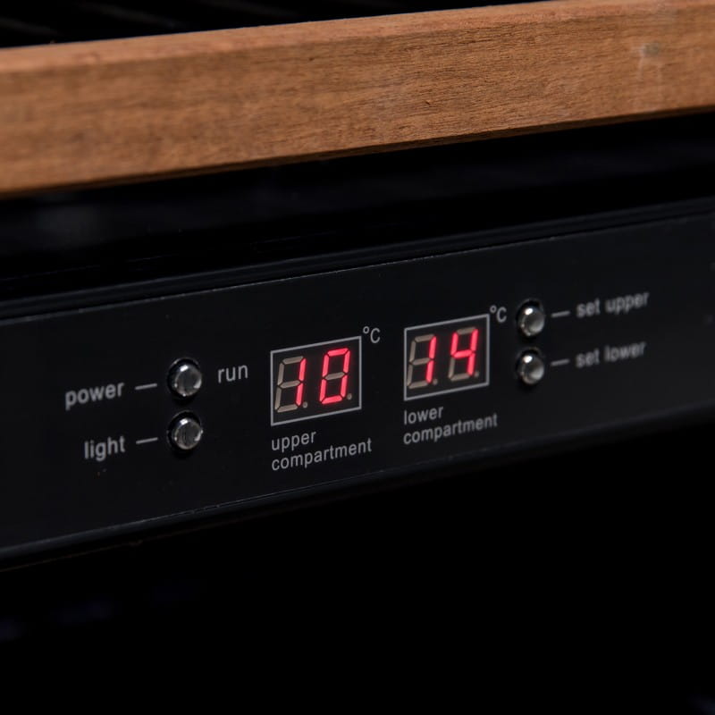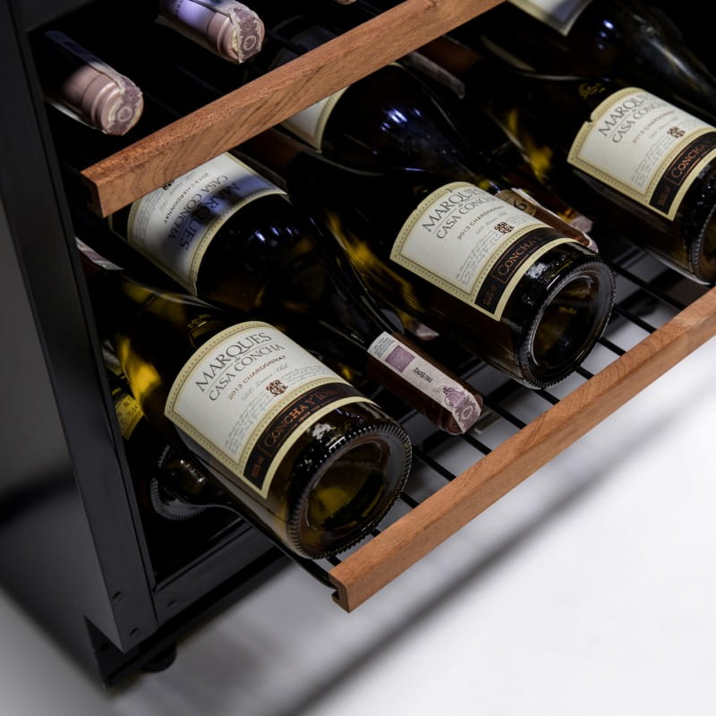 Chłodziarka o pojemności 19 butelek zachwyca designem – elegancką konstrukcją, dębowymi półkami i przyciemnianym szkłem z filtrem UV. Wnętrze skrywa dodatkowo kompresor tłumiący drgania czy element grzewczy. Wszystko po to, by stworzyć warunki przechowywania jak w winnicach. I dzięki temu zachować doskonały smak wina.